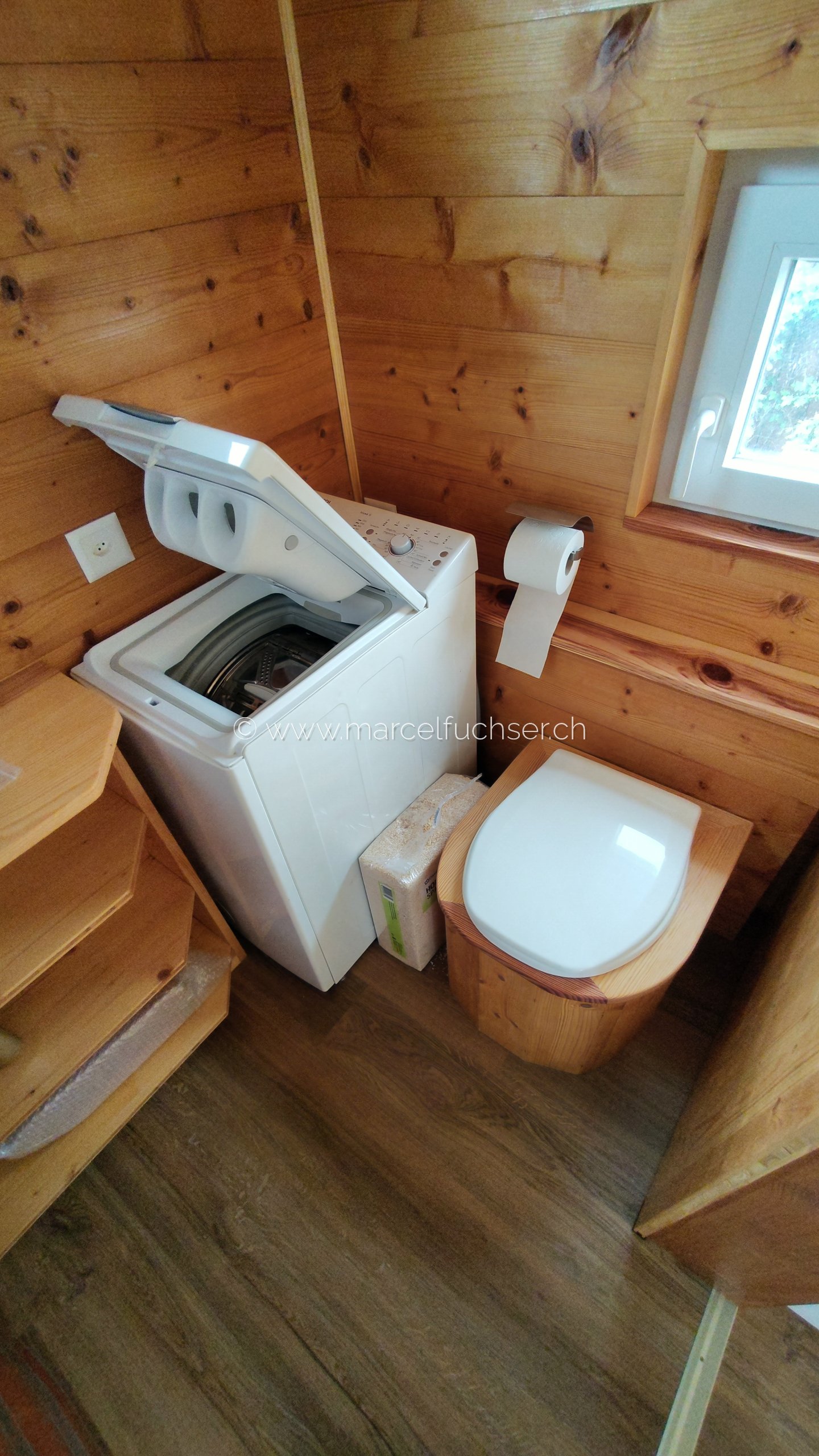 Im WC-Bereich wurde die WC-Halterung auf der linken Seite mittig montiert. Besser wäre rechts gewesen, doch dort war der Platz leider zu eng, sodass keine WC-Rolle hineingepasst hätte. Und der Toploader wurde noch an seinen Platz gebracht und wäre damit auch einsatzbereit. 👌